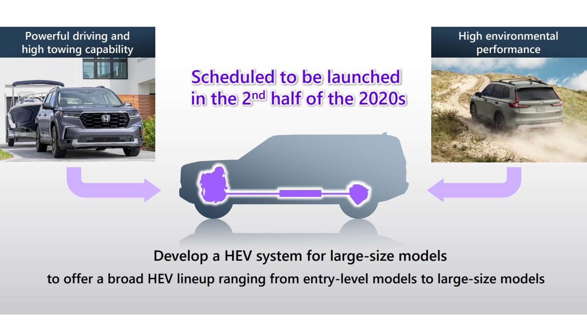 Генеральний директор Тосіхіро Мібе зазначив, що Honda пропонуватиме широкий асортимент гібридних автомобілів у США, від початкового рівня до великих моделей. У лютневих чутках стверджувалося, що Honda намагалася переконати Nissan відмовитися від своєї технології e-Power, що збільшує запас ходу, прагнучи, щоб майбутні моделі Nissan використовували гібридну систему Honda.
