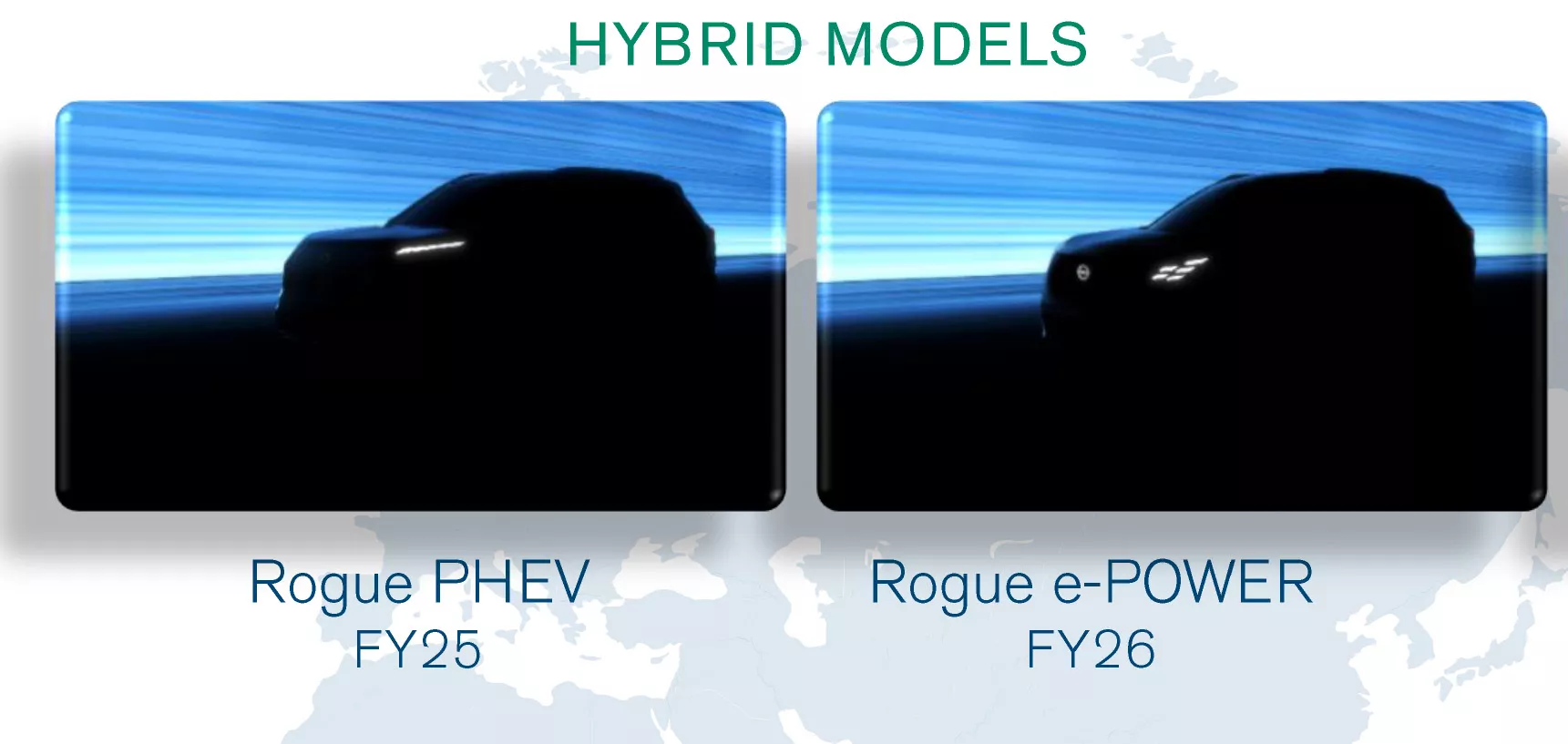Rogue e-Power, який має вийти у 2026 році, здається, має більш виразний власний дизайн. Тізер показує оновлені світлодіодні фари та знайомий силует Rogue, що передбачає оновлення в середині покоління.